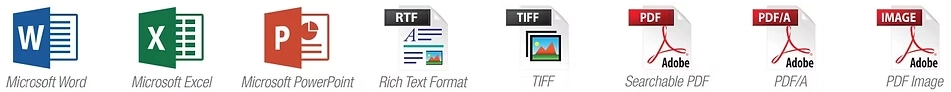 Convert scanned documents to 8 different editable document and image electronic file formats.