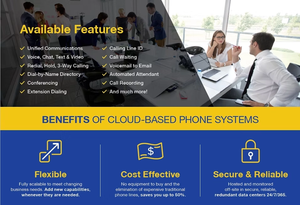 A cloud-based phone system that allows your employees to work from virtually anywhere and your customers to communicate to you more easily.